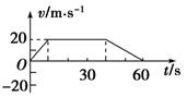 由图知40~60 s内汽车以加速度1 m/s2匀减速行驶,由运动学公式得