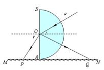 由几何知识得,ΔOPQ为直角三角形,所以两个光斑PQ之间的距离