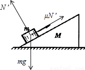 【答案】分析:物体先减速上滑,后加速下滑,加速度一直沿斜面向下;对整体受力分析,然后根据牛顿第二定律求解地面对物体M的摩擦力和支持力;对小滑块受力分析,根据牛顿第二定律分析m的加速度情况.