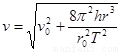 在勇气号火星探测器着陆的最后阶段,着陆器降落到火星表面上,再经过多次弹跳才停下来。假设着陆器第一次落到火星表面弹起后,到达最高点时高度为h,速度方向是水平的,速度大小为υ0,求它第二次落到火星表面时速度的大小,计算时不计大气阻力。已知火星的一个卫星的圆轨道的半径为r,周期为T,火星可视为半径为r0的均匀球体。