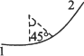 在轨道交通(地下铁道、铁轨等)中,两条正交或斜交的轨道(即转弯处)都用特制的圆弧轨道连接(也叫吻接).在图(a)中两条正交的轨道1和2,用一段和两条轨道都相切的张角为90°的圆弧轨道连接,如图(b)所示.在图(c)中两条斜交的轨道1和2成60°角,用一段与两条轨道都相切、张角为60°的圆弧轨道连接,如图(d)所示.说明不在一条直线上的铁轨吻接起什么作用?如图(e)中两条轨道1和2成45°角,画出这两条轨道的吻接图.
