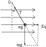 要使悬线回到竖直方向,设作用在小球的作用力方向与水平方向成α角斜向左下方,则