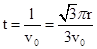 如图所示,半径为r的圆形空间内,存在着垂直于纸面向里的匀强磁场,一个带电粒子(不计重力),从A点以速度v0垂直磁场方向射入磁场中,并从B点射出,∠AOB=1200,则该带电粒子在磁场中运动的时间为( )