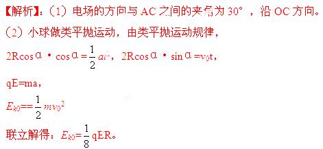 (2)若小球在A点的初速度与电场方向垂直,则小球恰能落到C点,则初动能为多大?