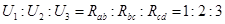三对正对极板间电压之比即ab、bc、cd段电压比,所以