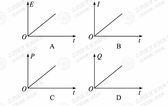与时间成正比,是一条倾斜的直线答案C错。设单位长度导体电阻为r,则经过时间t 回路电阻为