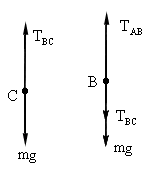 (1) C 点摆到最低位置时,两球受力情况如图所示.对C: