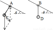 如图所示,两个倾角相同的滑竿上分别套有A、B两个质量均为m圆环,两个圆环上分别用细线悬吊两个质量均为M的物体C、D,当它们都沿滑竿向下滑动并保持相对静止时,A的悬线与杆垂直,B的悬线竖直向下.下列结论正确的是( )A.A环受滑竿的作用力大小为(m+M)gcosθ