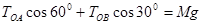 由图易知TOA、TOB 分别与竖直方向成60°和30°。
