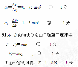 在同一粗糙水平面上以相同的初速度从同一位置开始运动。图 中的两条直线分别表示A物块受到水平拉力F作用和B物块不受拉力作用的v-t图象,求: