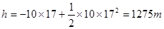 气球以10m/s的速度匀速竖直上升,从气球上掉下一个物体,经17s到达地面。物体刚脱离气球时气球的高度H=___________(g取10m/s2)