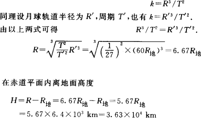 月球环绕地球运动的轨道半径约为地球半径的60倍,运行周期约为27天,应用开普勒定律计算:赤道平面内离地面多少高度,人造地球卫星可以随地球一起转动,就像停留在天空中不动一样?