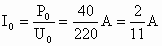 解:要使用电器正常工作,必须使用电器两端电压达到其额定值 220V.由电源电压根据变压器公式 此时由副线圈作为“电源”,对电灯供电.设共需并联 n盏电灯,每盏正常发光时的电流为根据欧姆定律,由 |