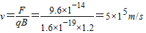 【答案】分析:根据洛伦兹力的表达式可以解出质速度大小,根据左手定则可以判断其受力方向即偏转方向.