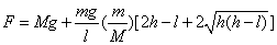 ²ñÓÍ´ò×®»úµÄÖØ´¸ÓÉÆø¸×¡¢»îÈûµÈÈô¸É²¿¼þ×é³É£¬Æø¸×Óë»îÈû¼äÓвñÓÍÓë¿ÕÆøµÄ»ìºÏÎï¡£ÔÚÖØ´¸Óë×®ÅöײµÄ¹ý³ÌÖУ¬Í¨¹ýѹËõʹ»ìºÏÎïȼÉÕ£¬²úÉú¸ßθßÑ¹ÆøÌ壬´Ó¶øÊ¹×®ÏòÏÂÔ˶¯£¬´¸ÏòÉÏÔ˶¯¡£ÏְѲñÓÍ´ò×®»úºÍ´ò×®¹ý³Ì¼ò»¯ÈçÏ£º²ñÓÍ´ò×®»úÖØ´¸µÄÖÊÁ¿Îªm£¬´¸ÔÚ׮ñÒÔÉϸ߶ÈΪh´¦£¨Èçͼ1£©´Ó¾²Ö¹¿ªÊ¼ÑØÊúÖ±¹ìµÀ×ÔÓÉÂäÏ£¬´òÔÚÖÊÁ¿ÎªM£¨°üÀ¨×®Ã±£©µÄ¸Ö½î»ìÄýÍÁ×®×ÓÉÏ¡£Í¬Ê±£¬²ñÓÍȼÉÕ£¬²úÉúÃÍÁÒÍÆÁ¦£¬´¸ºÍ×®·ÖÀ룬ÕâÒ»¹ý³ÌµÄʱ¼ä¼«¶Ì¡£Ëæºó£¬×®ÔÚÄàÍÁÖÐÏòÏÂÒÆ¶¯Ò»¾àÀël¡£ÒÑÖª´¸·´Ìøºóµ½´ï×î¸ßµãʱ£¬´¸ÓëÒÑͣϵÄ×®·ùÖ®¼äµÄ¾àÀëҲΪh£¨Èçͼ2£©¡£ÒÑÖªm£½1.0¡Á103kg£¬M£½2.0¡Á103kg£¬h£½2.0m£¬l£½0.20m£¬ÖØÁ¦¼ÓËÙ¶Èg£½10m/s2£¬»ìºÏÎïµÄÖÊÁ¿²»¼Æ¡£Éè×®ÏòÏÂÒÆ¶¯µÄ¹ý³ÌÖÐÄàÍÁ¶Ô×®µÄ×÷ÓÃÁ¦FÊǺãÁ¦£¬Çó´ËÁ¦µÄ´óС¡£