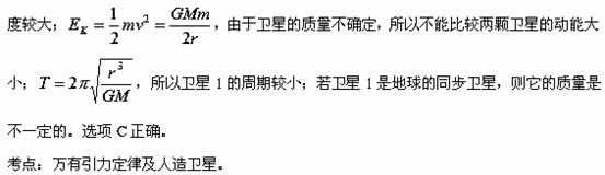 C.卫星1的周期较小 D.若卫星1是地球的同步卫星,则它的质量一定