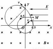 微粒在磁场中刚好运动3/4圆周后,从点(0.5,0)处垂直电场方向进入电场做类平抛运动.设微粒第二次进入磁场的位置坐标为(0,y),则:
