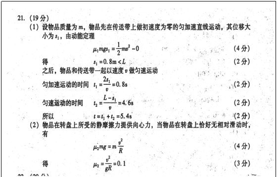 =2.0m/s,物品在转盘上与轴O的距离R=4.Om,物品与传送带间的动摩擦因数