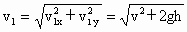 在塔顶上分别向跟水平线成45°角斜向上的、水平的、跟水平线成45°角斜向下的三个方向开枪,子弹射到地面时的速度大小分别为