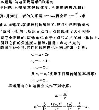 由此可知选D也是正确的. 至于a点和b点仅是圆周半径相等,而线速度和角速度都不相等,所以A、B都是错误的. |