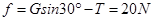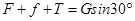 试题分析:施加拉力前,物体受到四个力的作用而平衡:重力G、垂直斜面向上的支持力N、沿斜面向上的摩擦力f和弹簧对物体施加沿斜面向上的弹力T,受力如图,