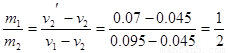 一位同学在用气垫导轨探究动量守恒定律时,测得滑块A以0.095m/s的速度水平向右撞上同向滑行的滑块B,碰撞前B的速度大小为0.045m/s,碰撞后A、B分别以0.045m/s、0.07m/s的速度继续向前运动。求:A、B两滑块的质量之比。
