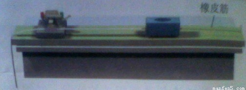 本实验的装置需要改进,否则,橡皮条掉不下来,最后会减速运动,改进方案如下图,最右端为一个铁钉