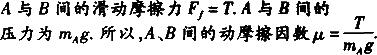 利用如图所示的装置测定木块A与木板B间的滑动摩擦因数.水平力F匀速向左拉动木板B时,测力计示数为T,知A、B两物体的质量分别为mA和mB.则A、B间的滑动摩擦因数为μ=________.