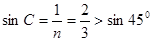 解析:折射率为1.5的玻璃,临界角
