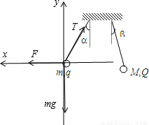 两个通草球带电后相互推斥,如图所示.两悬线跟竖直方向各有一个夹角α、β,且两球在同一水平面上.两球质量用m和M表示,所带电量用q和Q表示.若已知α>β,则一定有关系( )A.两球一定带同种电荷