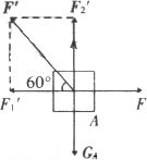 隔离出来A为研究对象,画出受力示意图,如图所示.根据题意A静止,应有F合=0,FN=G- A与桌面间的最大静摩擦力fm=μFN=0.27 N,所以静摩擦力的取值范围是0<Ff≤0.27 N. 当F> Fx=0,Fmax= 当F< Fx=0,Fmin= F的取值范围是4.73 N≤F≤5.27 N. |