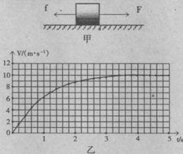 如题18图甲所示,足够大的水平面上静置一质量m=lkg的物体,若物体一旦运动就会受到一个阻碍物体运动的阻力f,且f=kV(k=lkg/s),现在给物体施加一个水平向右的恒定拉力F,并每隔0.2s测量一次物体的速度,乙图是根据所测数据描绘出物体的V—t图像。求: