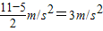 解答:解:取初速度方向为正方向,则初速度为v=5m/s,末速度为v=11m/s,时间t=2s,则