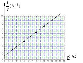 解析:读得该直线的截距为0.9A-1,求得其斜率为0.67V-1; 根据闭合电路欧姆定律,E=I(R+r),变换得到