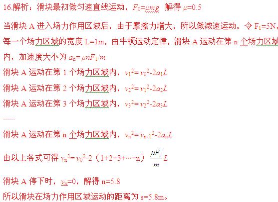 (2010西安模拟)如图甲所示,一个质量为m=4kg的小滑块A,在水平力F0=20N作用下,在水平面上沿x轴正方向以v0=5m/s做匀速直线运动。在x≥0区域,存在场力作用区,可对滑块施加竖直向下的作用力F,并通过传感器来控制力的变化。从滑块A进入场力作用区开始,力的变化如图乙所示。求滑块在场力作用区域运动的距离。(已知