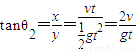 【答案】分析:从图中可以看出,速度与水平方向的夹角为θ1,位移与竖直方向的夹角为θ2.然后求出两个角的正切值.
