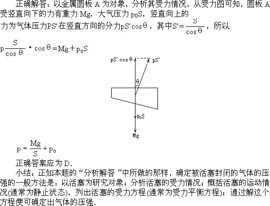 ,圆板的质量为M,不计圆板A与容器内壁之间的摩擦,若大气压强为P0,则被圆板封闭在容器中气体的压强p等于