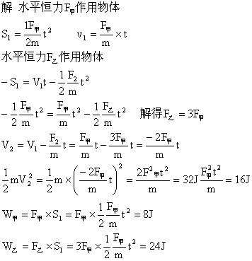 在光滑水平面上有一静止的物体. 现以水平恒力甲推这一物体, 作用一段时间 后, 换成相反方向的水平恒力乙推这一物体. 当恒力乙作用时间与恒力甲作用 时间相同时, 物体恰好回到原处, 此时物体的动能为32J. 则在整个过程中, 恒 力甲做的功等于____________J, 恒力乙做的功等于_________J.