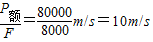 B、汽车以额定功率起动,当汽车速度为5m/s时,牵引力F=