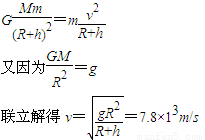 (2)若飞船绕地球运行的轨道离地面高度为400km,已知地球半径为6400km,地球表面重力加速度g=10m/s2,求此飞船的速度.(保留2位有效数字)