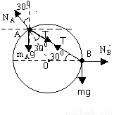 一光滑圆环固定在竖直平面内,环上套着两个小球A和B(中央有孔),A、B间由轻细绳连接着,它们处于图中所示位置时恰好都能保持静止状态.此情况下,B球与环中心O处于同一水平面上,A、B间的细绳呈伸直状态,与水平线成30
