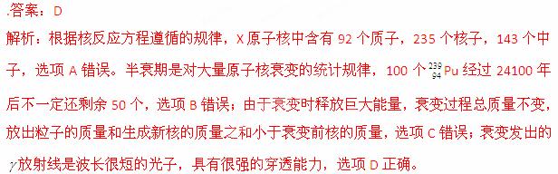 (2013天星调研卷)核能作为一种新能源在现代社会中已不可缺少,我国在完善核电安全基础上将加大核电站建设。核泄漏中的钚(Pu)是一种具有放射性的超铀元素,它可破坏细胞基因,提高罹患癌症的风险。已知钚的一种同位素