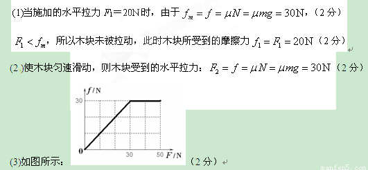(3)若木块受到的水平拉力F由零逐渐增大,请在给定的图上画出木块所受到的摩擦力f大小与拉力F的图线(只画出图线,标出特征值,无需说明)。