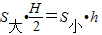 ,又因S大=4S小,可得h=2H,此时A上方水银柱的总高度为: