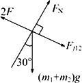 答案:(1)2 m/s2(2)140 N 方向沿斜面向上(3)0.5 s 解析:(1)对整体2F-(m1+m2)gsin30°-Ff12=(m1+m2)a,Ff12=0.1(m1+m2)g,解得a=2 m/s2