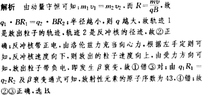 ③反冲核是逆时针运动,放射出的粒子是顺时针运动