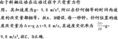 下列关于做斜抛运动的物体速度改变量的说法中正确的是(g=9.8 m/s2)