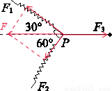 如图所示的水平面上,橡皮绳一端固定,另一端连接两根弹簧,连接点P在F1、F2和F3三力作用下保持静止,下列判断正确的是( ) ![]()