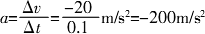 8 m/s的速度飞来,运动员把它以12 m/s的速度反向踢出,踢球时间为0.1 s,设球飞来的方向为正方向,则足球在这段时间内的加速度是[ ]