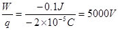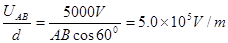 解析试题分析:电场力对该电荷做功大小与电势能的增加量相等而且做负功-0.1J;A、B两点它们间的距离为2 cm,两点的连线与场强方向成60°角,A、B两点的电势差UAB为